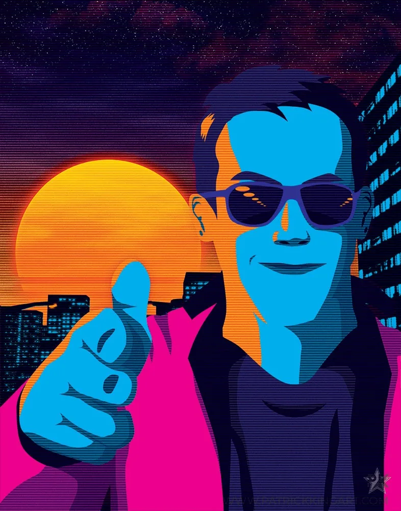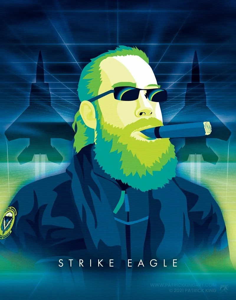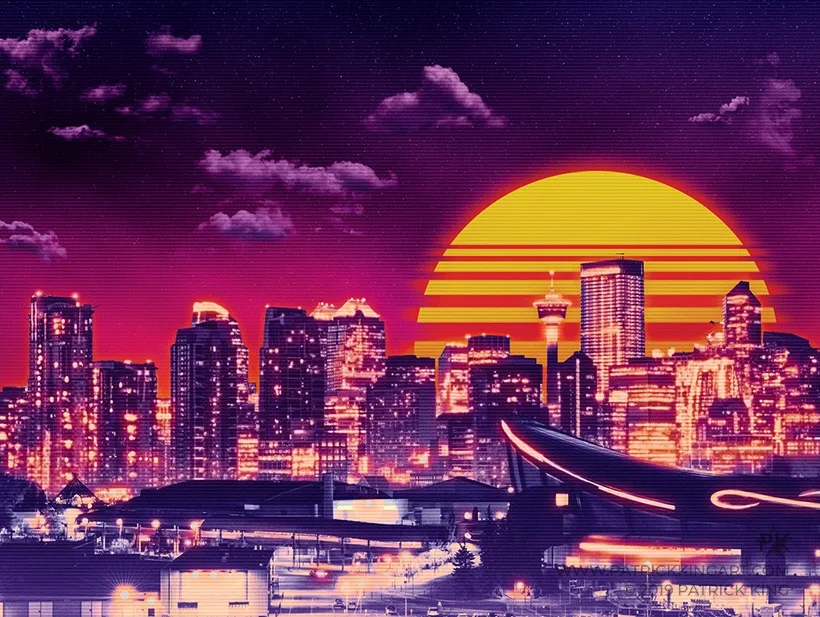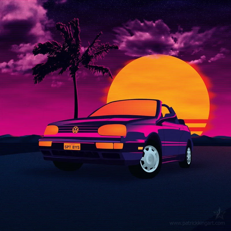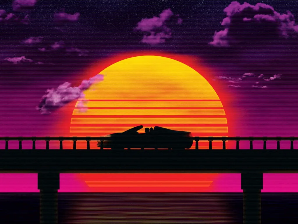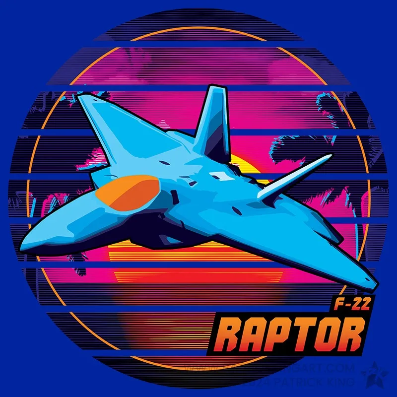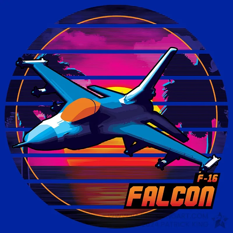 Fighter jets in an 80s-inspired neon/retro style.