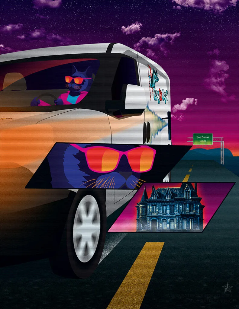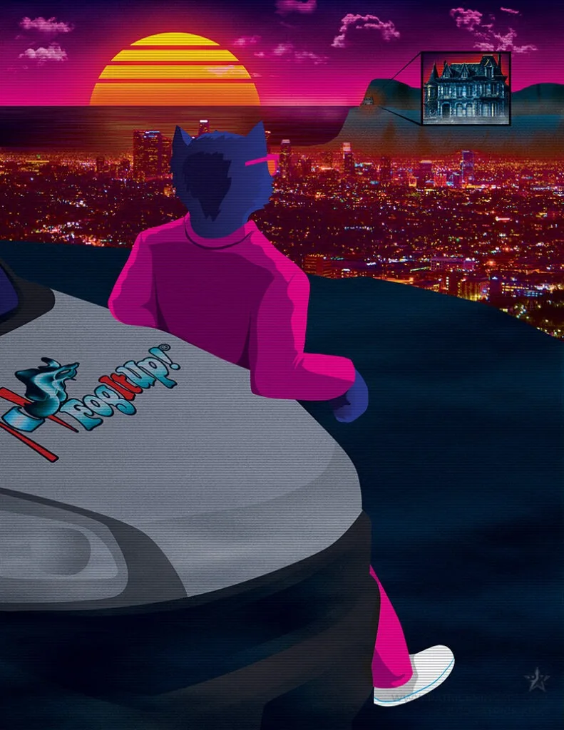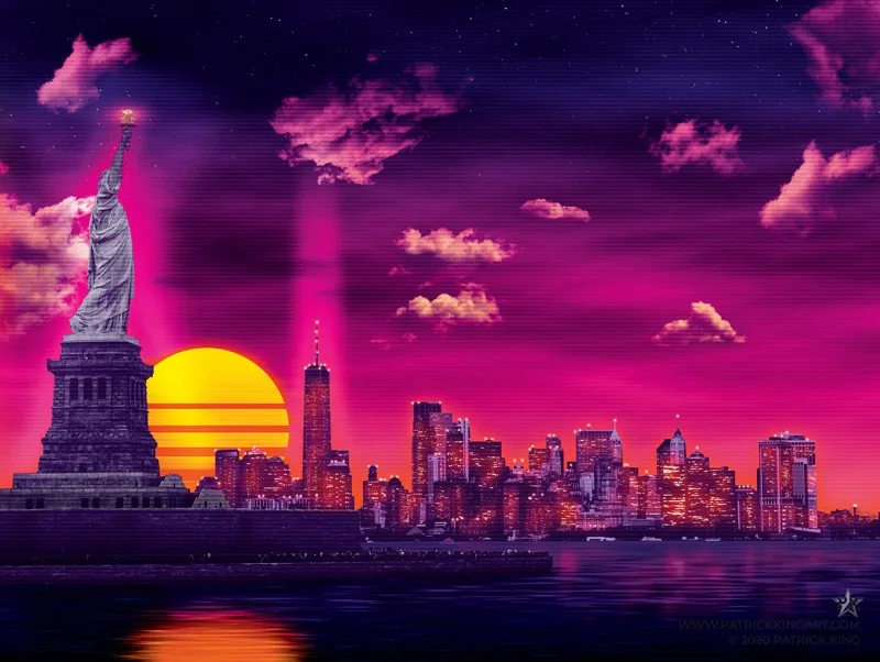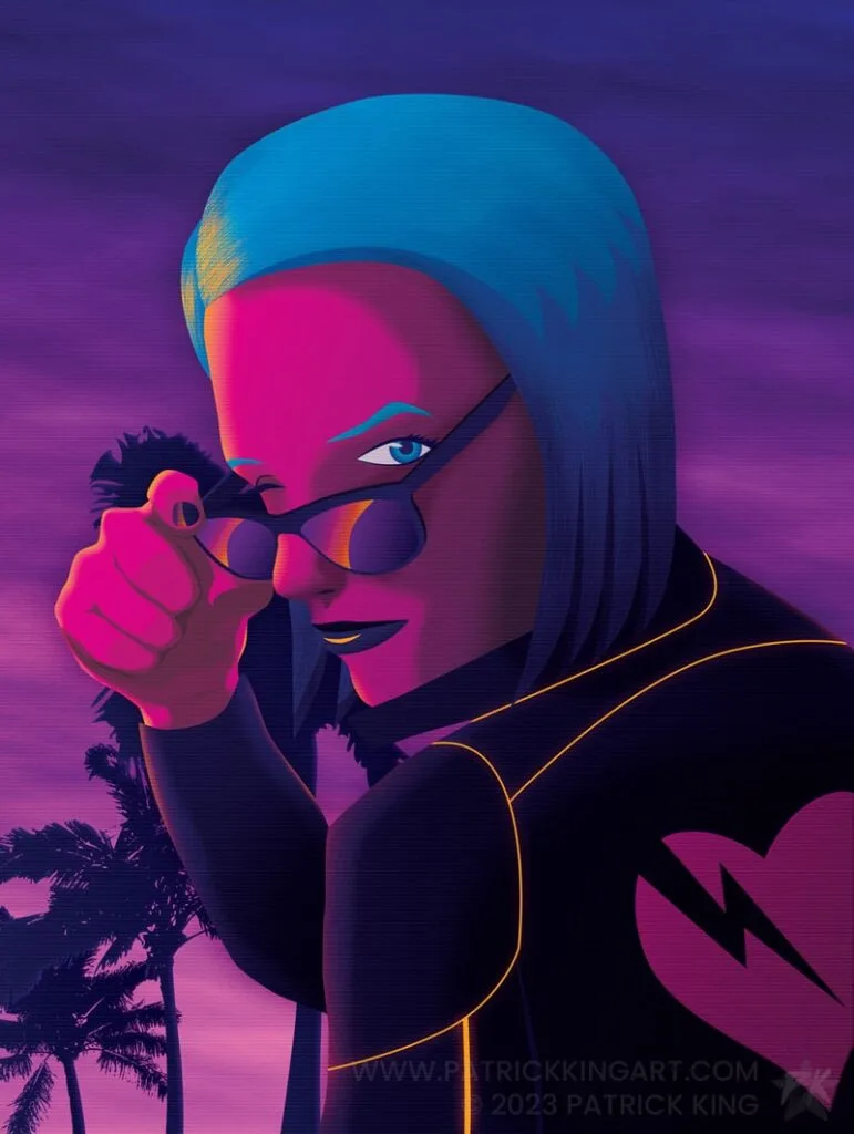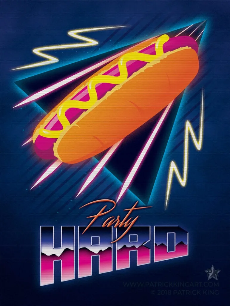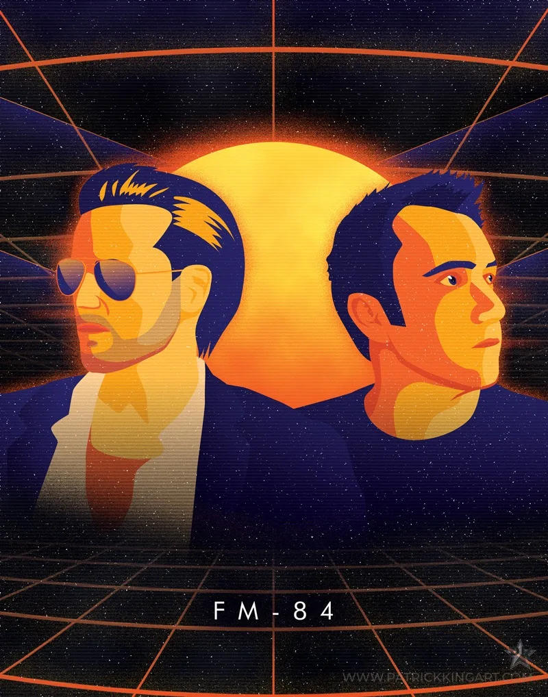 Fighter jets in an 80s-inspired neon/retro style.