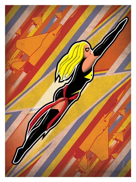 Pop art-stylized fighter jets.