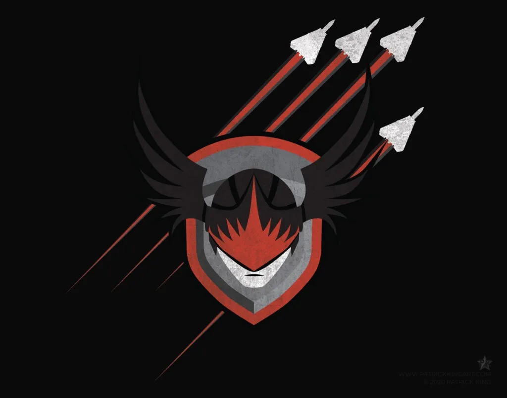 The main characters of Ace Combat with their respective logos/iconography.