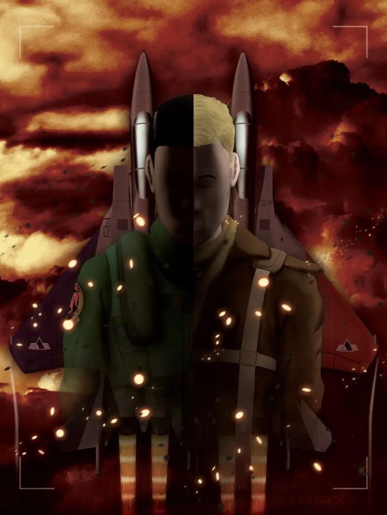 The protagonists and antagonists of Ace Combat depicted in a pop art-inspired, minimal style.