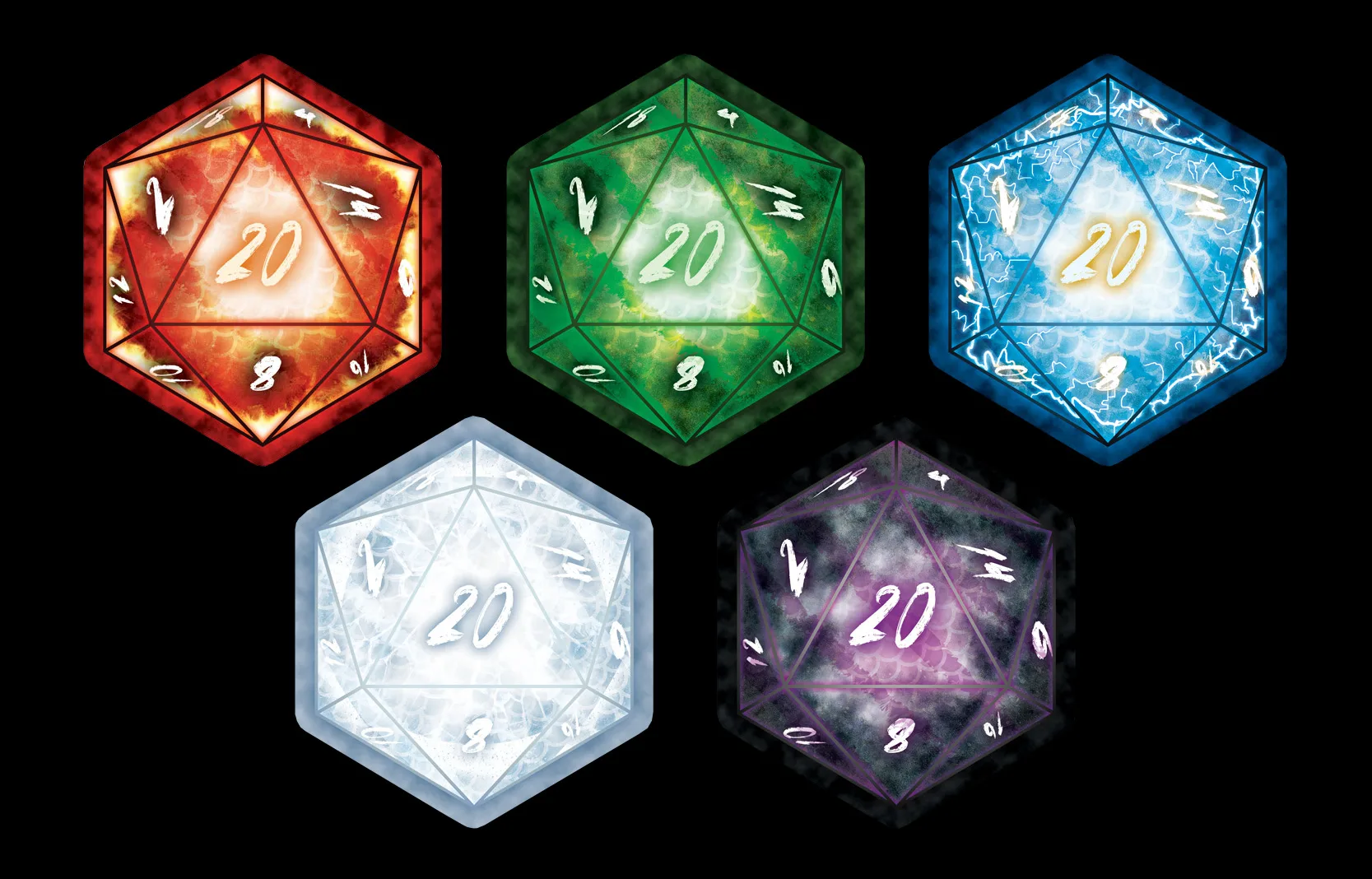 Roll for initiative! Inspired by the evil chromatic dragons of the Forgotten Realms. Buy the whole set and get the Tiamat-inspired sticker FREE!