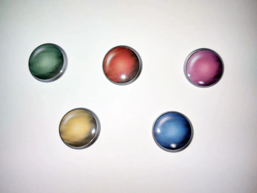 1″ button designs inspired by materia from the legendary Final Fantasy VII